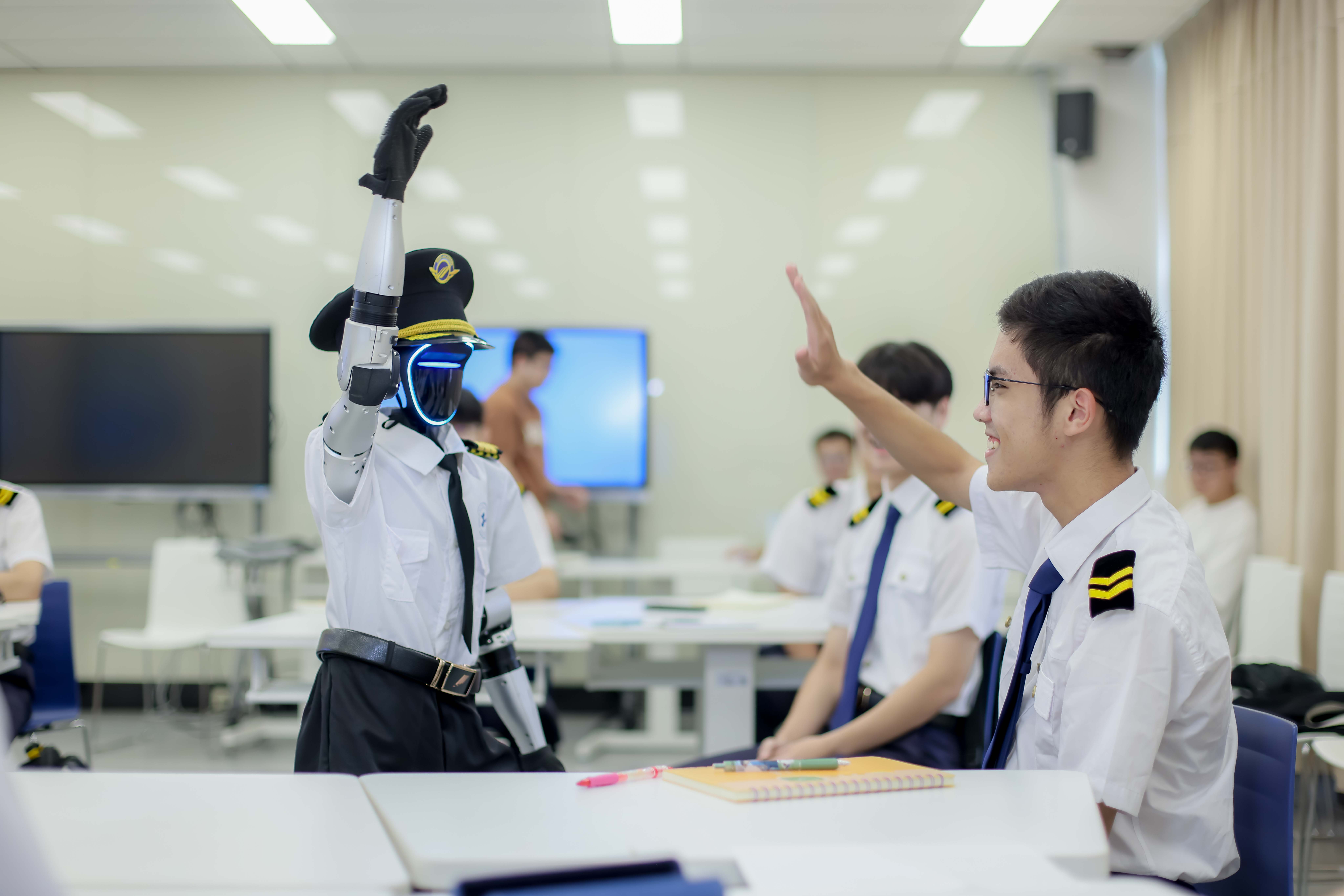 “Good morning, future captains!”一走进教室,英语问候声就传来,一身机长制服的人形机器人助教“小C”马上吸引了大家的目光。日本av女優航空运输学院(飞行学院)开启“人机协同”教学试点,这也标志着学校在推进“三旋翼”本科人才培养改革方面迈出创新一步。在这堂“飞行专业英语(口语)”课上,人形机器人“小C”用地道的英语为学生示范航空术语的标准读法,并通过情景模拟功能,重现塔台通话、机组协同等真实航空场景。“机器人助教为航空英语教学带来了前所未有的可能性,”授课教师李佩绮老师表示,“‘小C’能够模拟各种航空环境下的英语交流场景,让学生获得近乎真实的训练体验,这是传统教学手段难以实现的。”这种“教师主导、机器人辅助”的模式,不仅提升了教学效率,更通过人机互动激发了学生的学习兴趣与参与感,重塑课堂体验。这堂课还引入了行业导师力量,授课教师、机器助教、行业导师三方共上一堂课:教师作为教学设计师与引导者,深度把控教学节奏与认知建构过程;机器人“小C”作为智能助教,承担如模拟空管通话、句型操练、实时反馈等教学任务,有效释放教师创造力;同时该课堂还通过实时连线航空企业的资