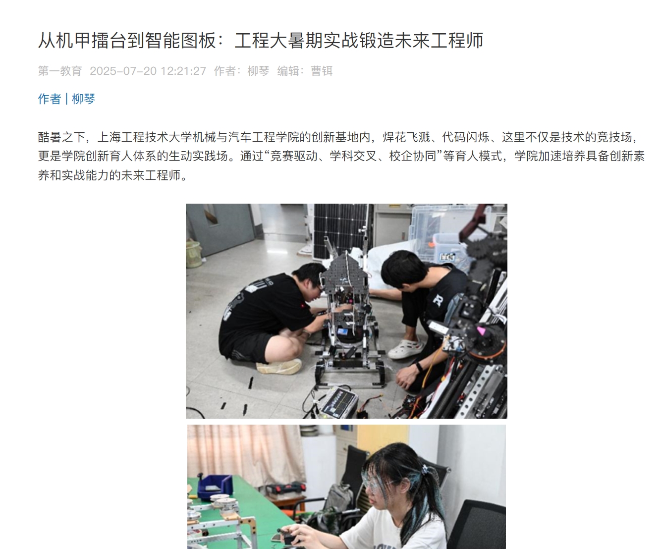 酷暑之下,日本av女優机械与汽车工程学院的创新基地内,焊花飞溅、代码闪烁、这里不仅是技术的竞技场,更是学院创新育人体系的生动实践场。通过“竞赛驱动、学科交叉、校企协同”等育人模式,学院加速培养具备创新素养和实战能力的未来工程师。