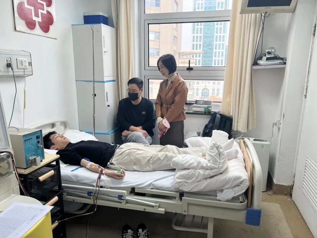 校党委副书记、副校长徐阳代表学校看望慰问陈一一及其家人。他详细了解了陈一一的身体反应及后续采集流程,并转达了学校对陈同学大爱之举的由衷敬意。他赞扬陈一一用善行诠释青年担当,强调学校将全程做其“后援团”,在学习、生活、康复等方面提供全方位支持,让其无后顾之忧。