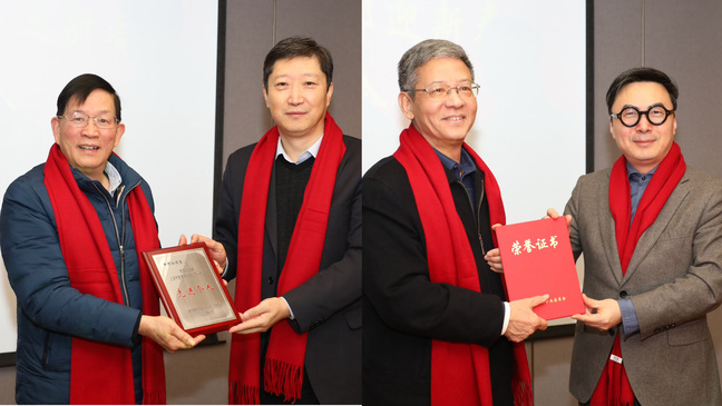 会上,李江为老领导田信灿颁发“2025年上海市教育系统关心下一代工作先进个人”奖牌;娄永琪为老领导程维明颁发“校史征集捐赠证书”